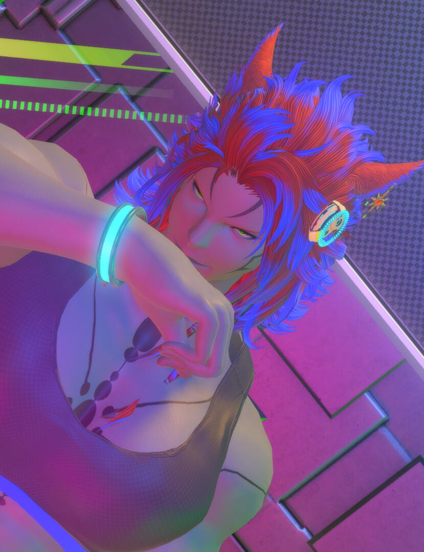 An Alexandrian Miqite (Miqo'te) who resides within Solution Nine. He fights within the AAC as a non-ranker, providing fights for entertainment rather than titles, going by the name of 'Manticore Prime'. He's taken to traveling Eorzea with friends, exploring the unknown and seeing what this world outside his own has to offer.