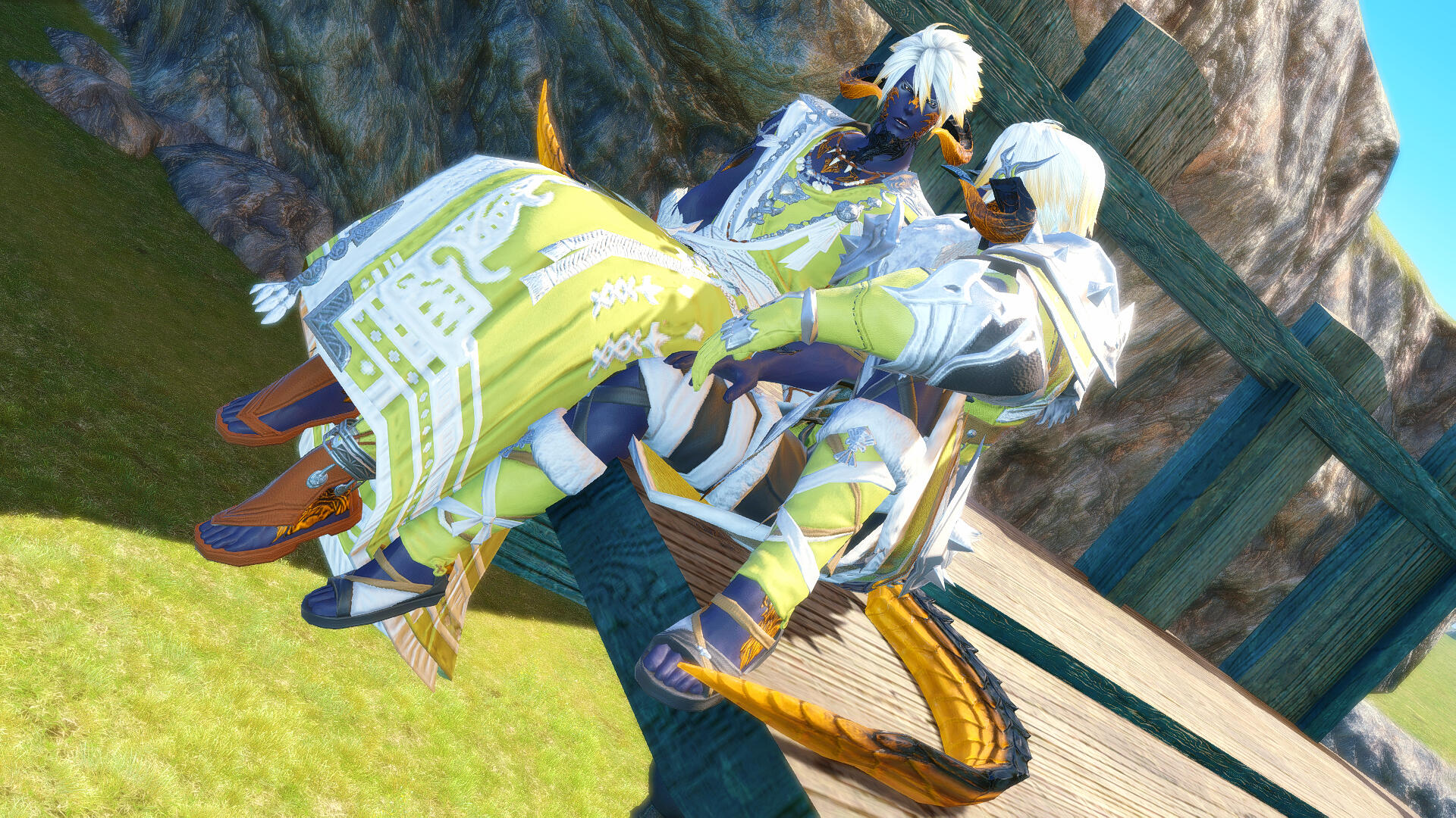 A Rava Viera hailing from Thavnair, who desires to bring peace and happiness to all those he visited. Early on in his journey, he found himself caught in a raid by the Garlean Empire, forced into the service of the army. He manages to escape them after years of planning and is now on the run for his life, hiding out from the Empire